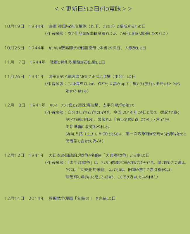 当作品は作者にとって人生初の戦争漫画≠ナした。そして正直、最初で最後としたいジャンルです。